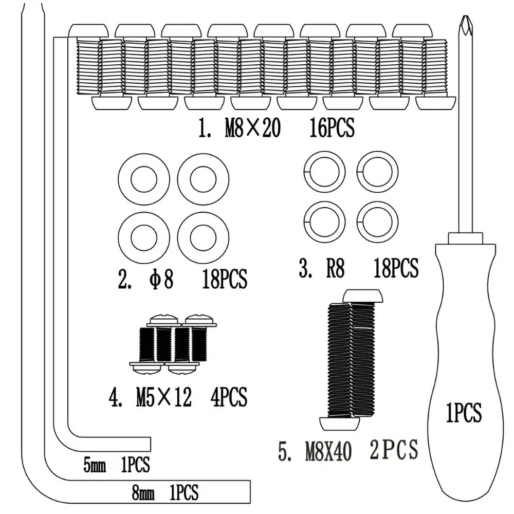 This complete kit will be used to assemble or disassemble your NoblePro Elite E10 treadmill. It contains everything you need to build a sturdy and robust machine.
