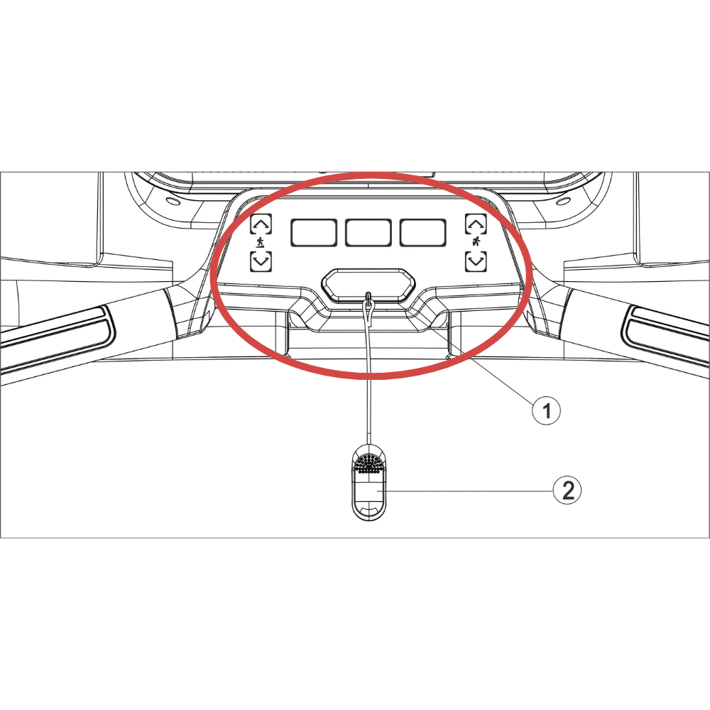 Replacement sticker for the control buttons incl. start/stop, speed and incline, on the console frame for E10 treadmills.