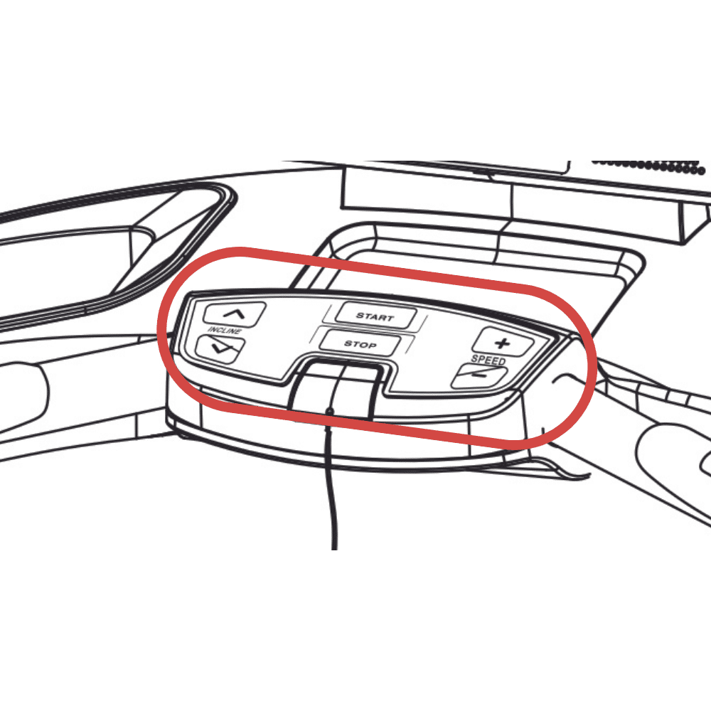 Replacement sticker for the control buttons incl. start/stop, speed and incline, on the console frame for E8 treadmills.